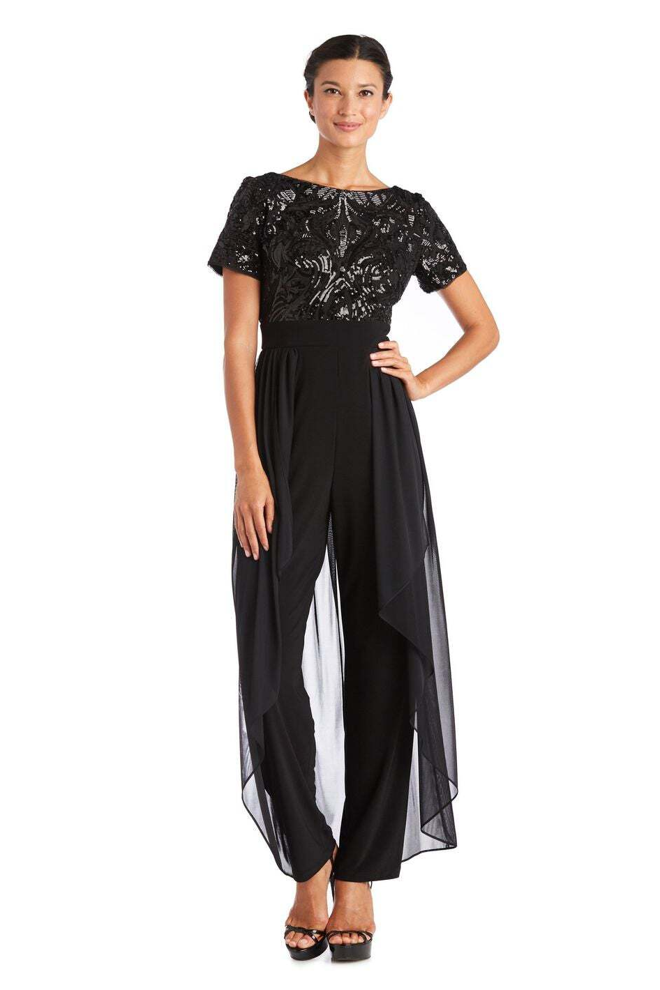 Vestido todo bordado con espalda escotada y tajo